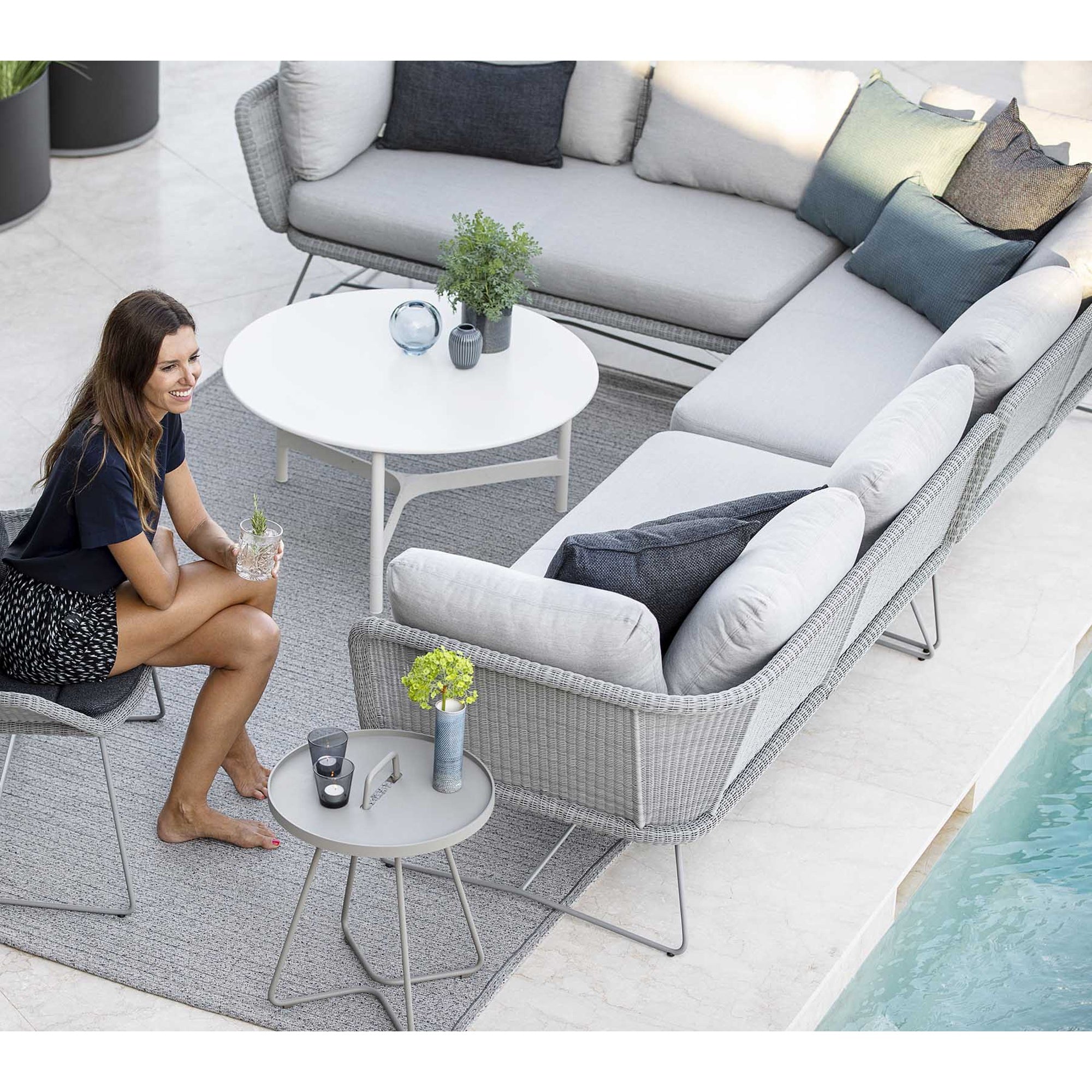 Designed by Cane-line Design, this lounge concept embodies Scandinavian aesthetics with a focus on exceptional comfort and versatile design. Crafted to withstand the elements, it invites relaxation and reflection in any outdoor space. The elegant profile and refined materials create a haven for unwinding and enjoying the surroundings.