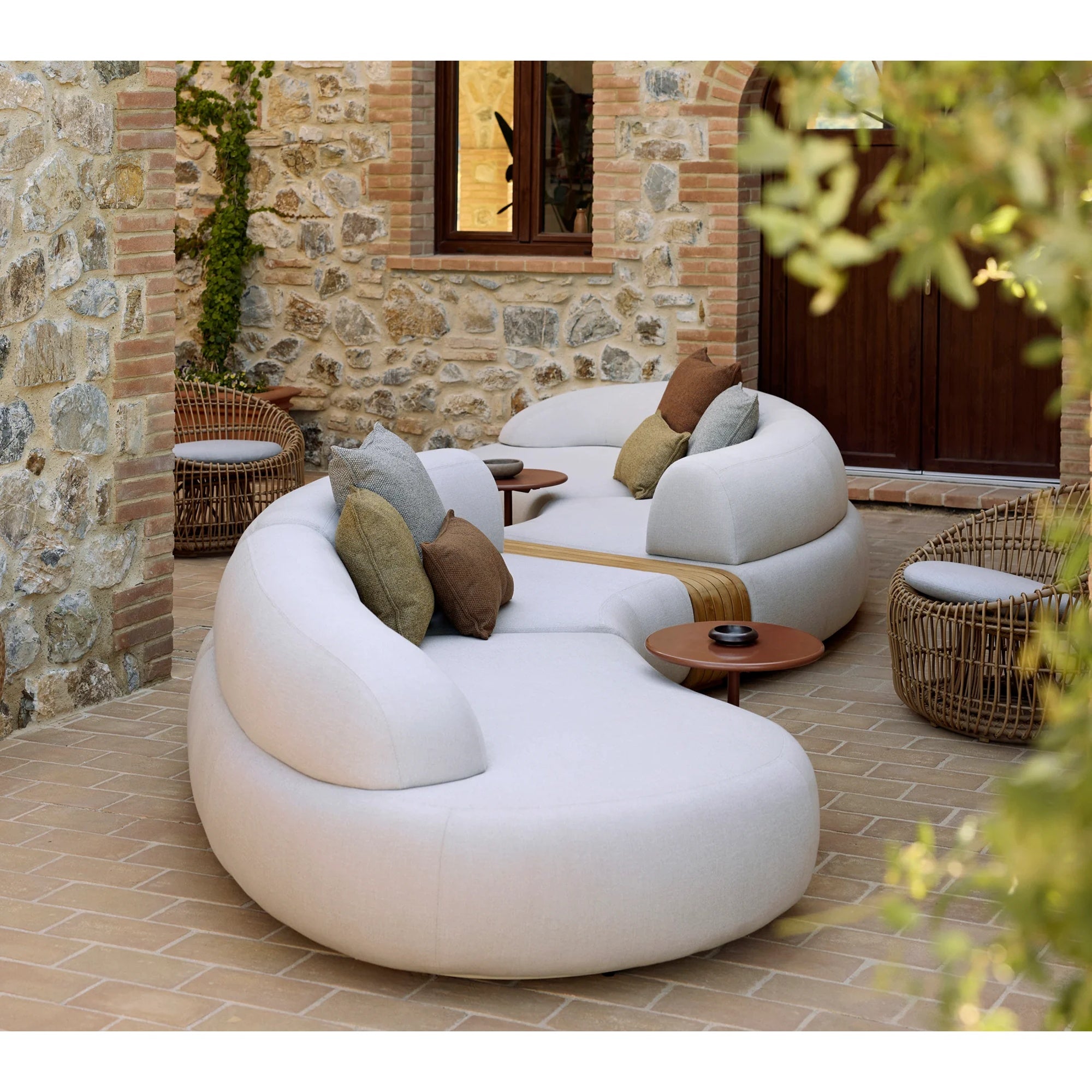 This elegant module, designed by Cane-line Design, brings a touch of modern sophistication to any outdoor lounge area. Its soft, inviting curves and low seat height offer a cosy and comfortable seating experience. The short backrest adds an open and airy feel to the overall design, enhancing the sense of space.