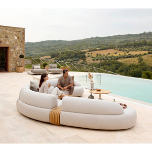 This piece seamlessly blends modern aesthetics with exceptional comfort, making it an ideal addition to any outdoor lounge area. Designed with a curvy silhouette, a low seating profile, and plush upholstery, it offers an inviting space for relaxation. The short backrest provides an open and airy feel to the design, ensuring both style and comfort are perfectly balanced. This versatile module serves as a foundation for creating a personalized lounge setup that can adapt to your evolving needs.