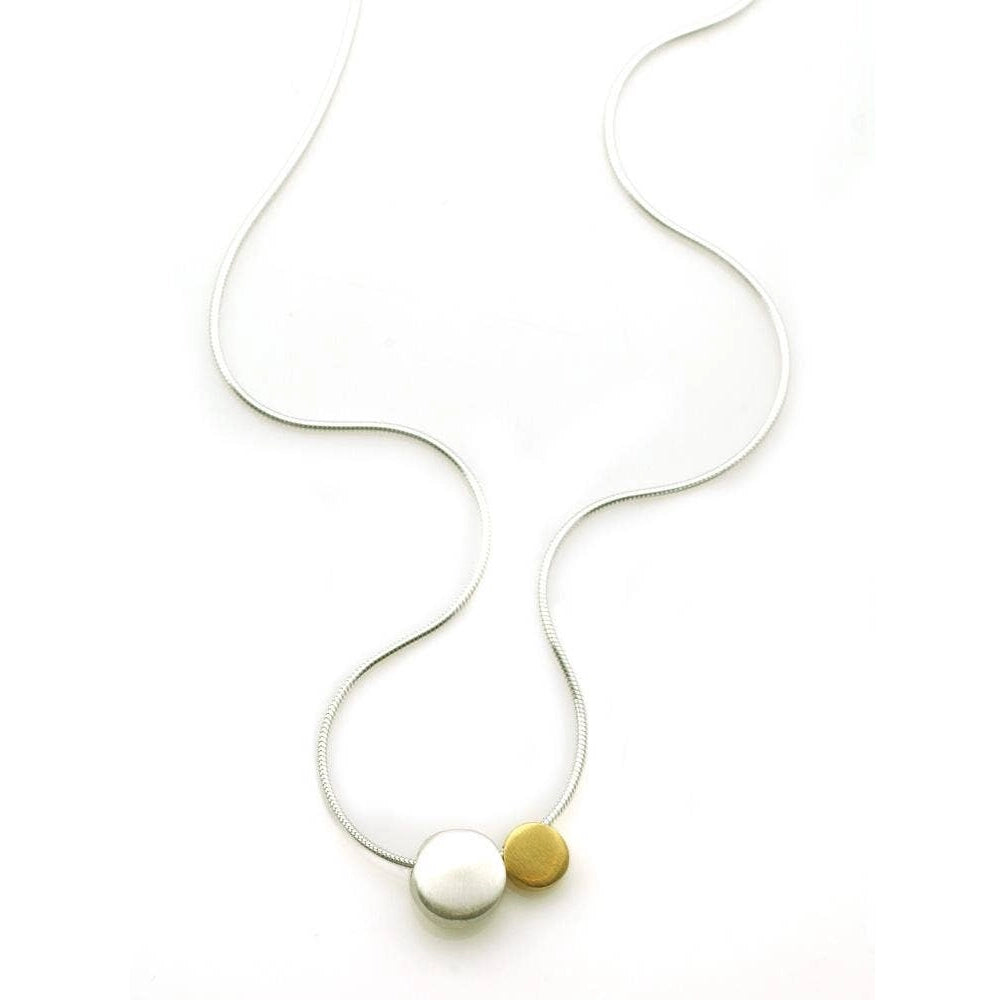 18" chain, pendant hangs approx. 3/8". Silver & Vermeil