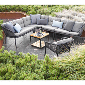 Crafted with Cane-line Soft Rope meticulously woven onto a robust aluminum frame, this module ensures lasting durability and weather resistance. The plush cushions, made with Cane-line Wove, provide exceptional comfort and are designed for outdoor use.