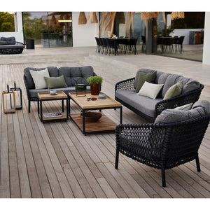 Constructed from durable Cane-line materials with a strong aluminum frame. The wicker pattern is crafted from Cane-line fibers, which are ideal for outdoor use due to their resistance to weather and wear. The cushions are made with a QuickDry & Airflow system.