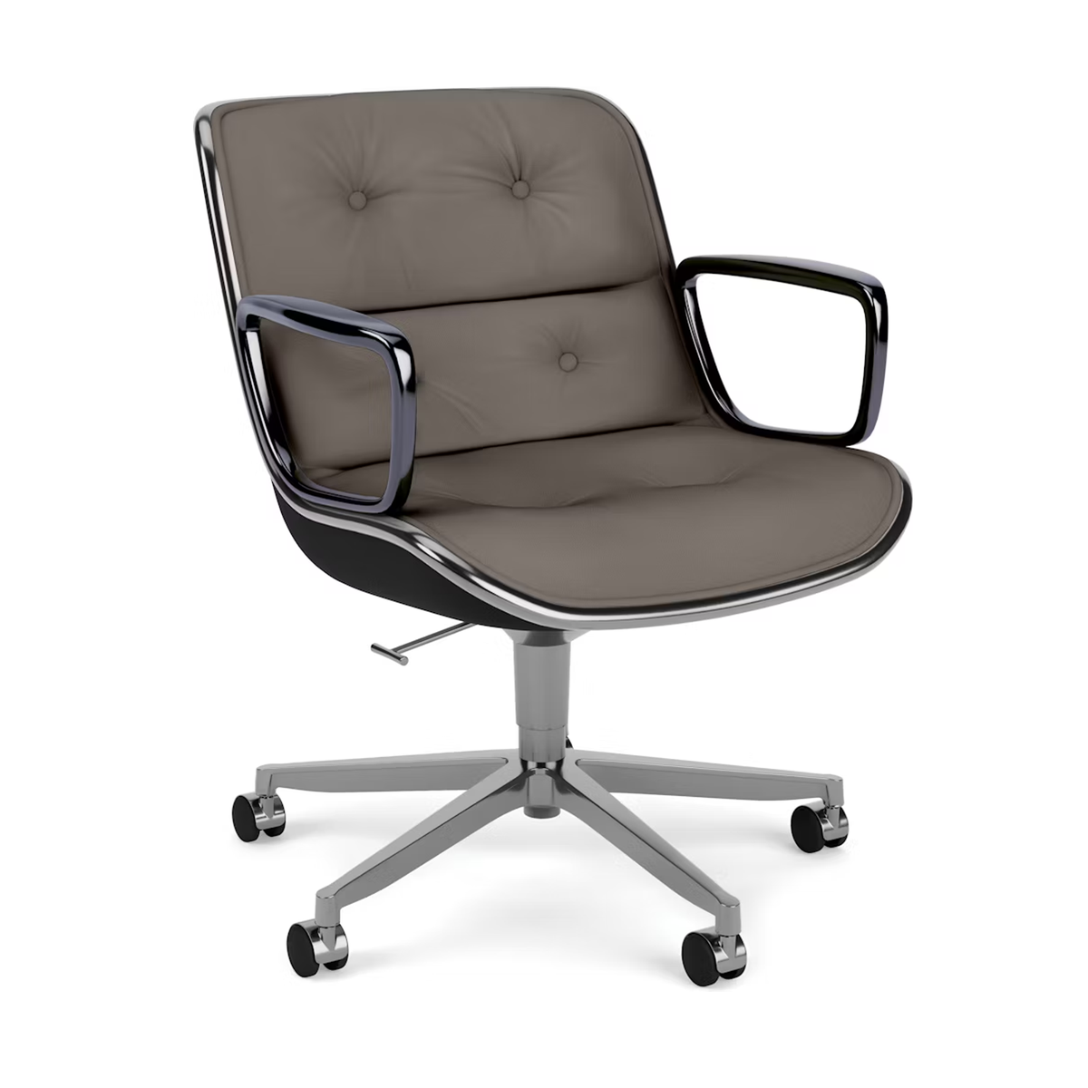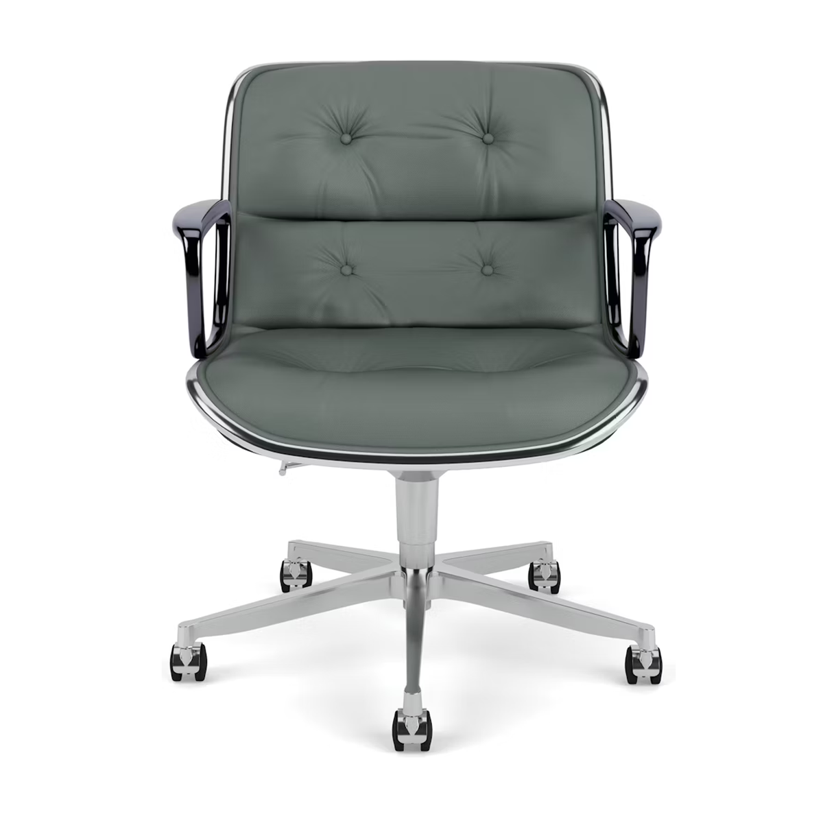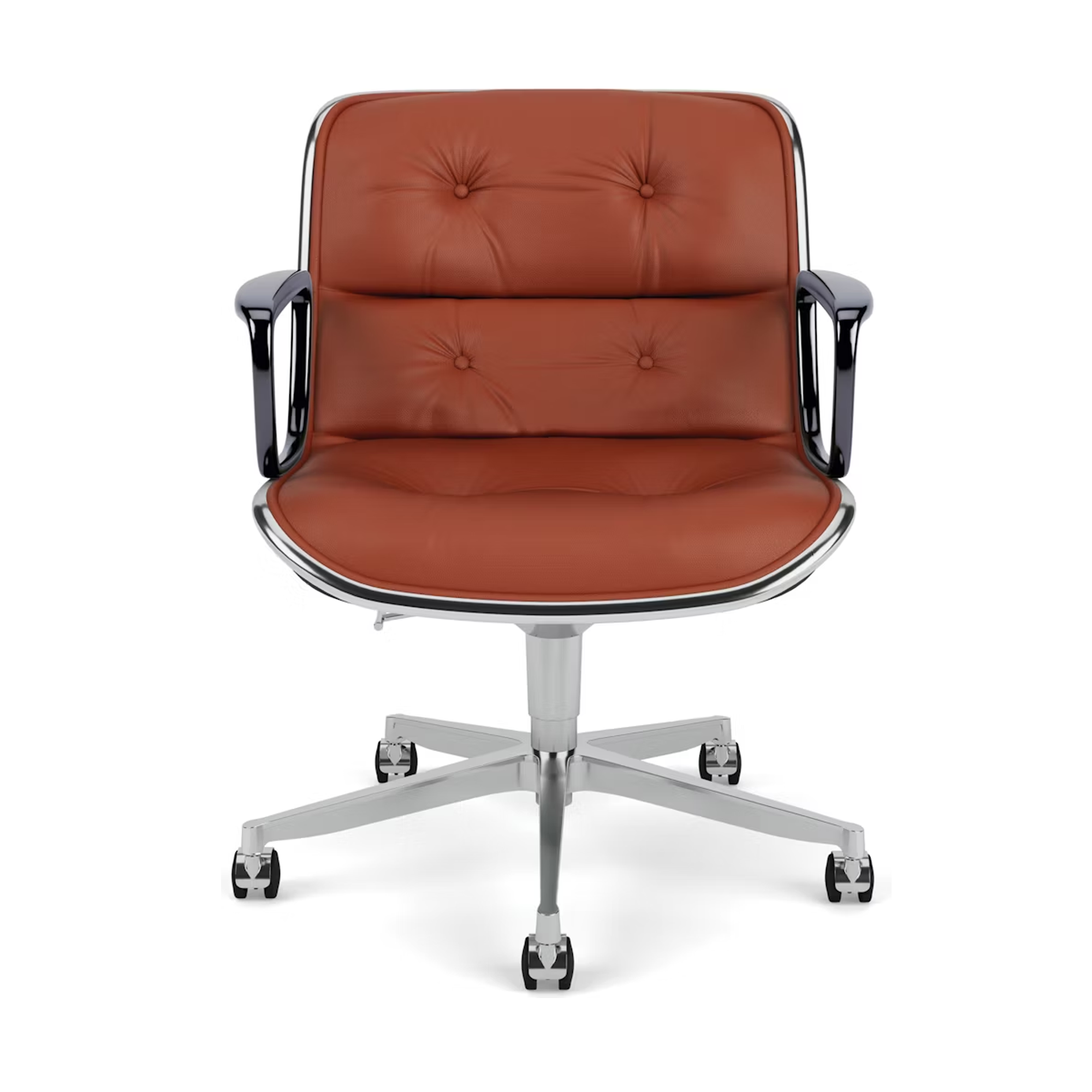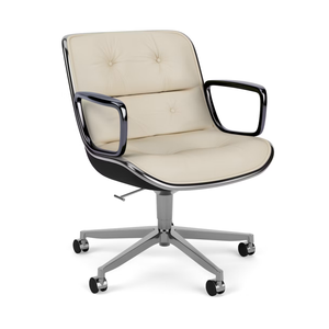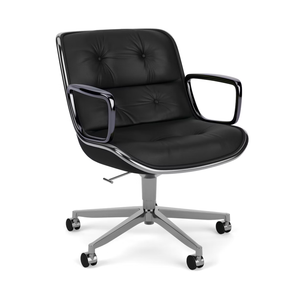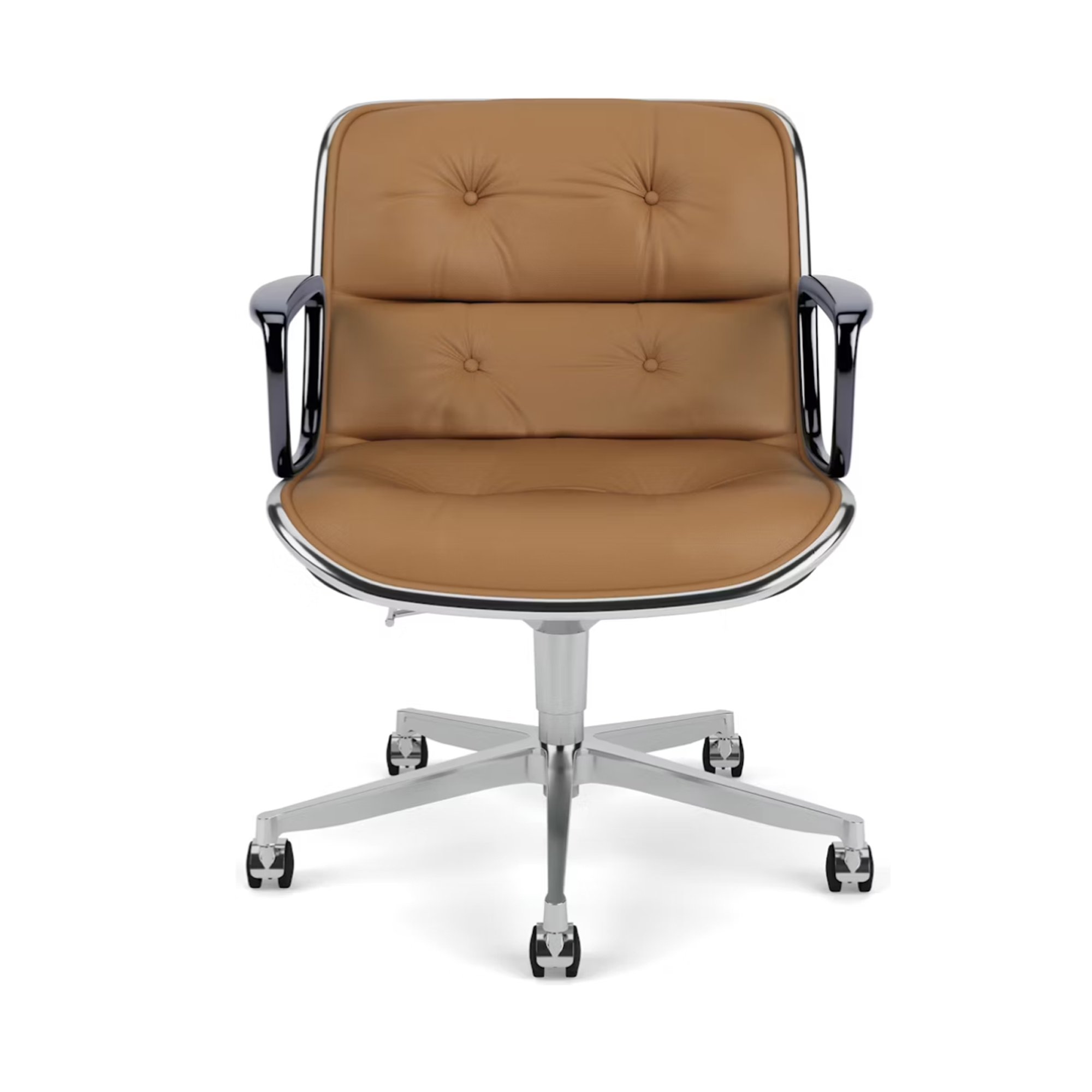 The Pollock Executive Chair features what the designer described as "rim technology"—the use of a single aluminum band around the chair's perimeter to hold the design together, structurally and visually. Fifty years after its introduction, the Pollock Chair continues to exude timeless elegance in any home office.