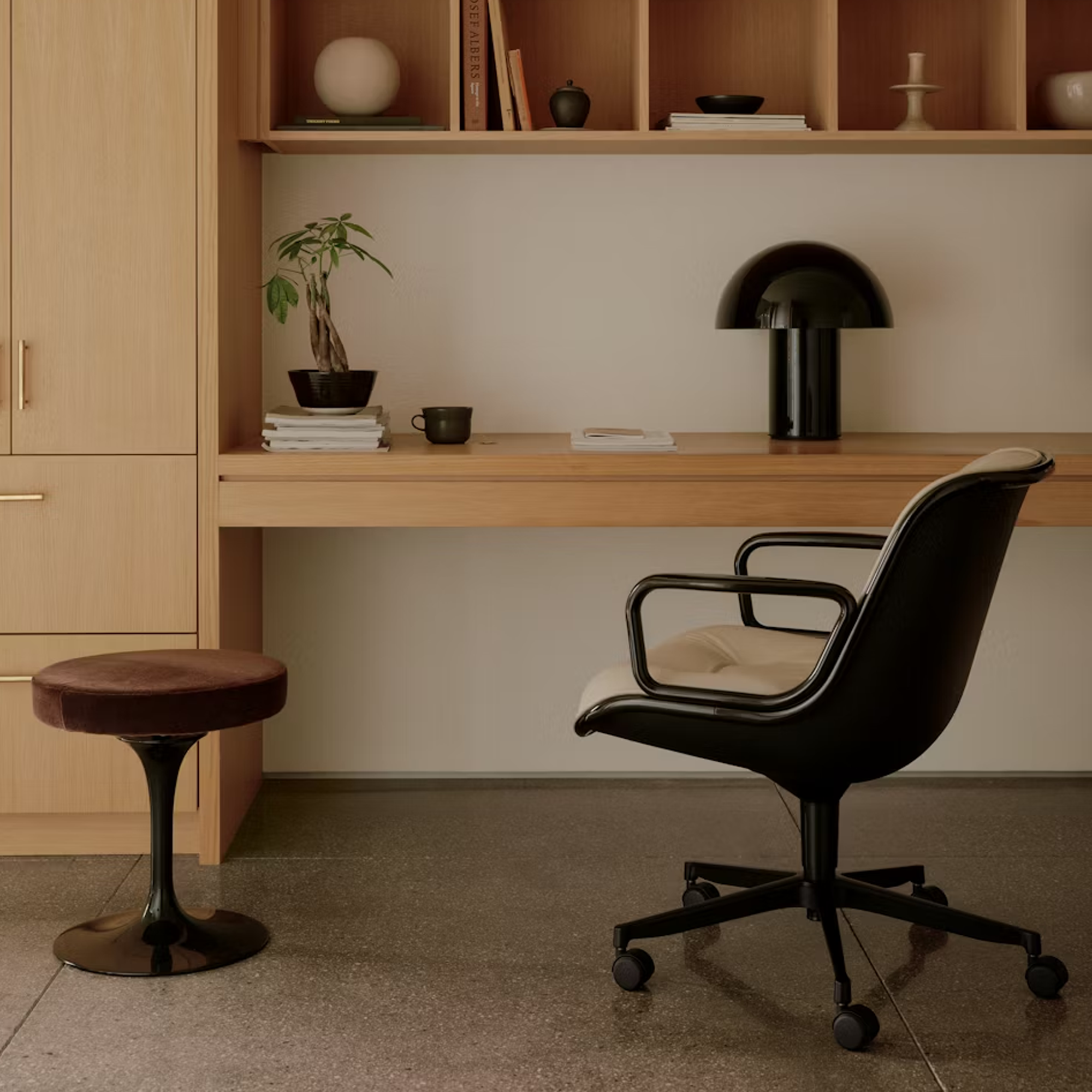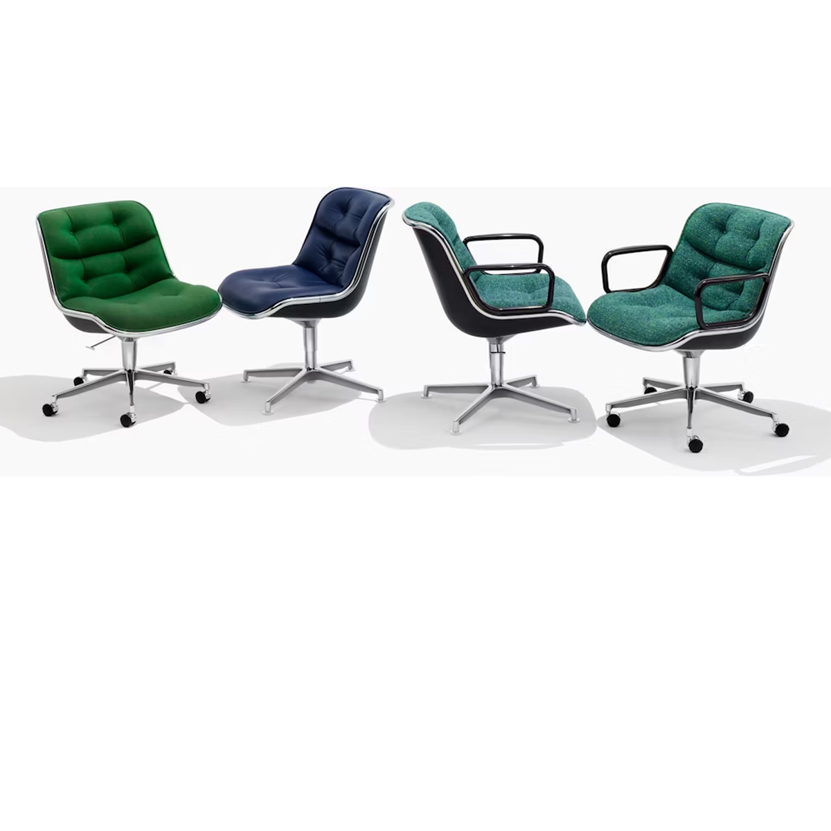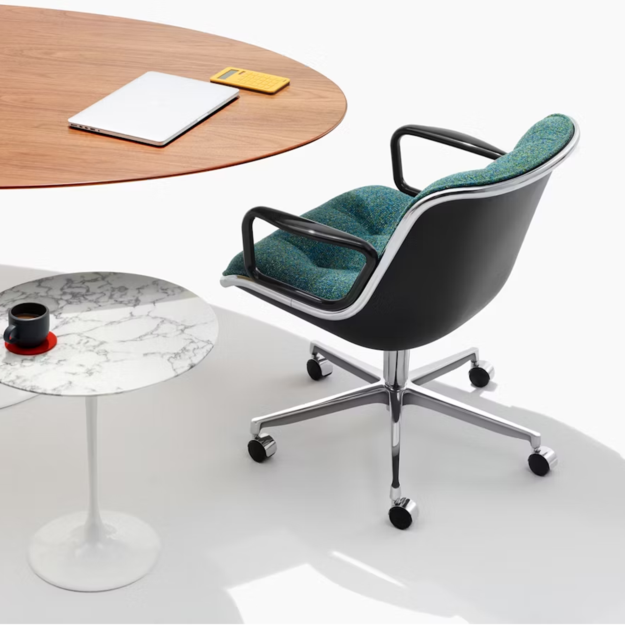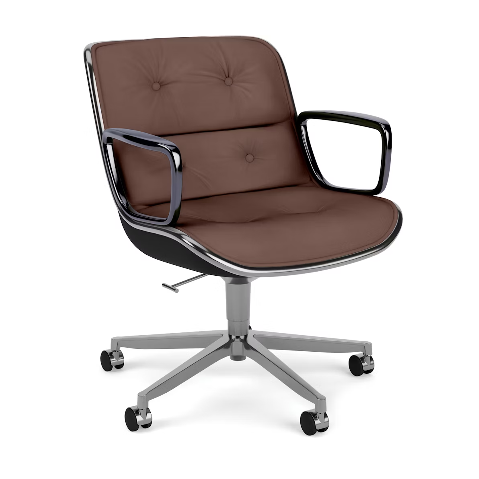 The Pollock Executive Chair features what the designer described as "rim technology"—the use of a single aluminum band around the chair's perimeter to hold the design together, structurally and visually. Fifty years after its introduction, the Pollock Chair continues to exude timeless elegance in any home office.