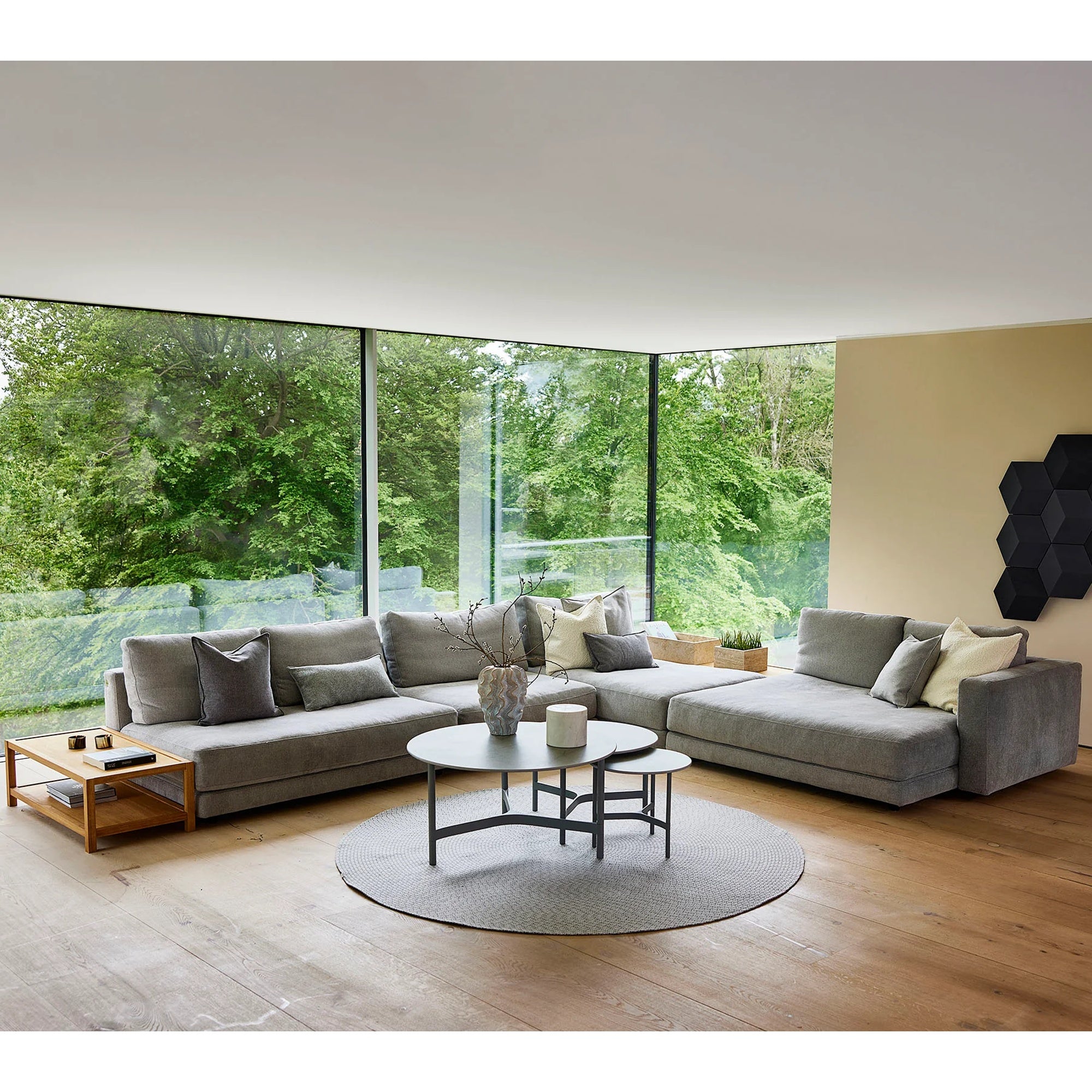 • Boxy look with significant armrests for a modern aesthetic