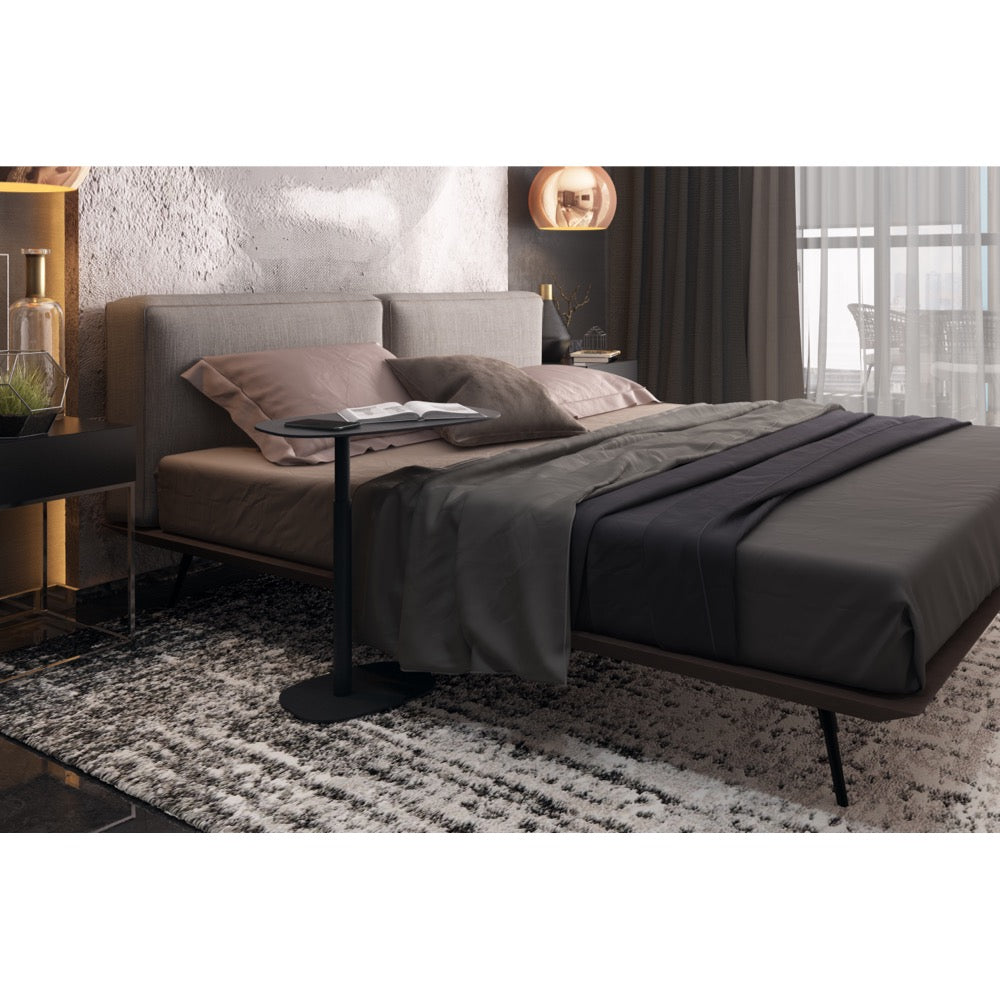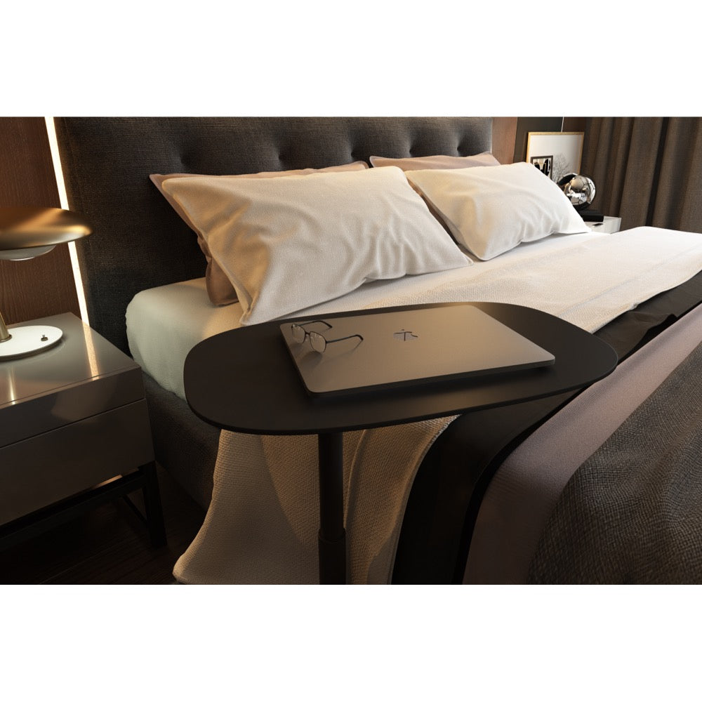 A generous adjustable tabletop surface offers ample space for eating, reading, or working at precisely the right height.