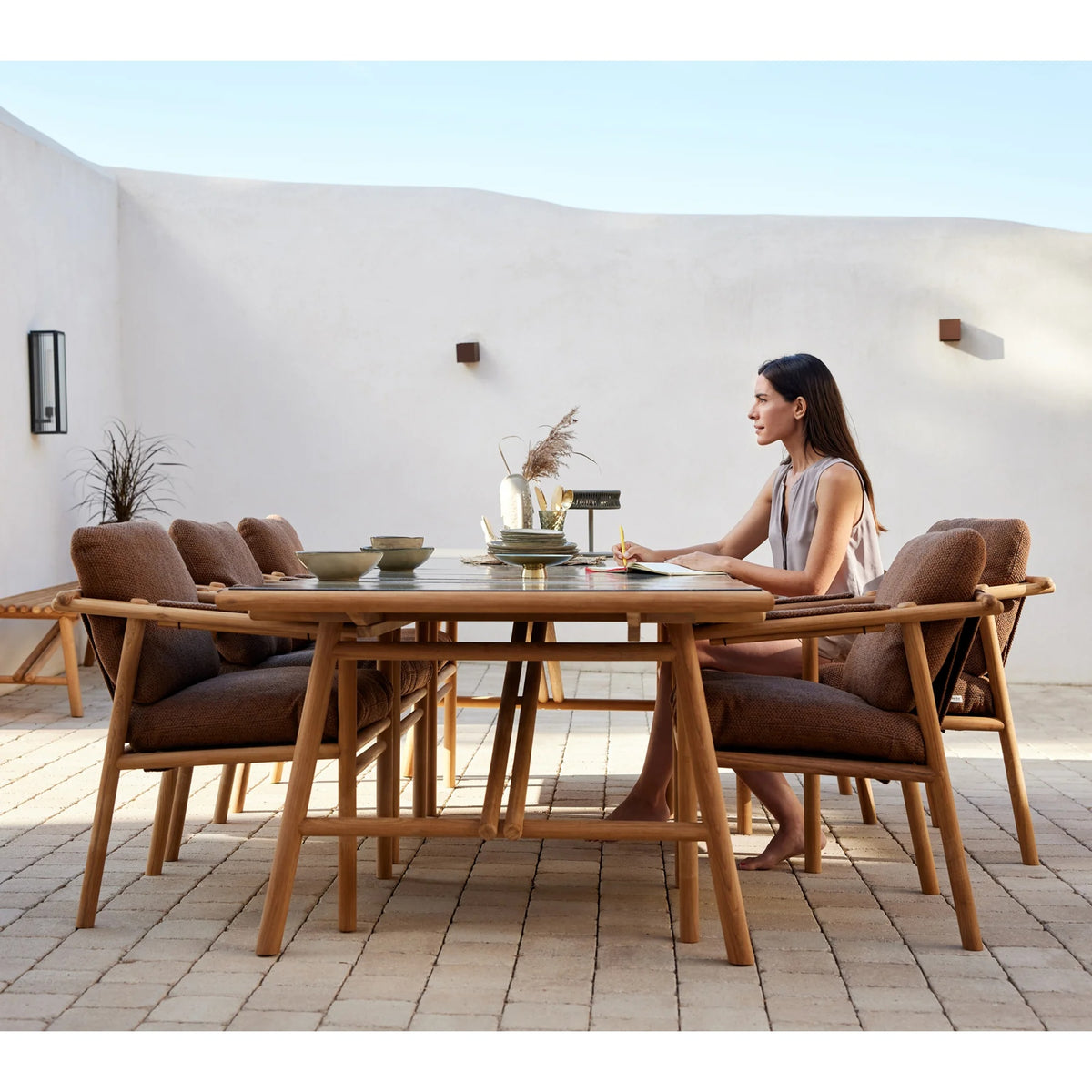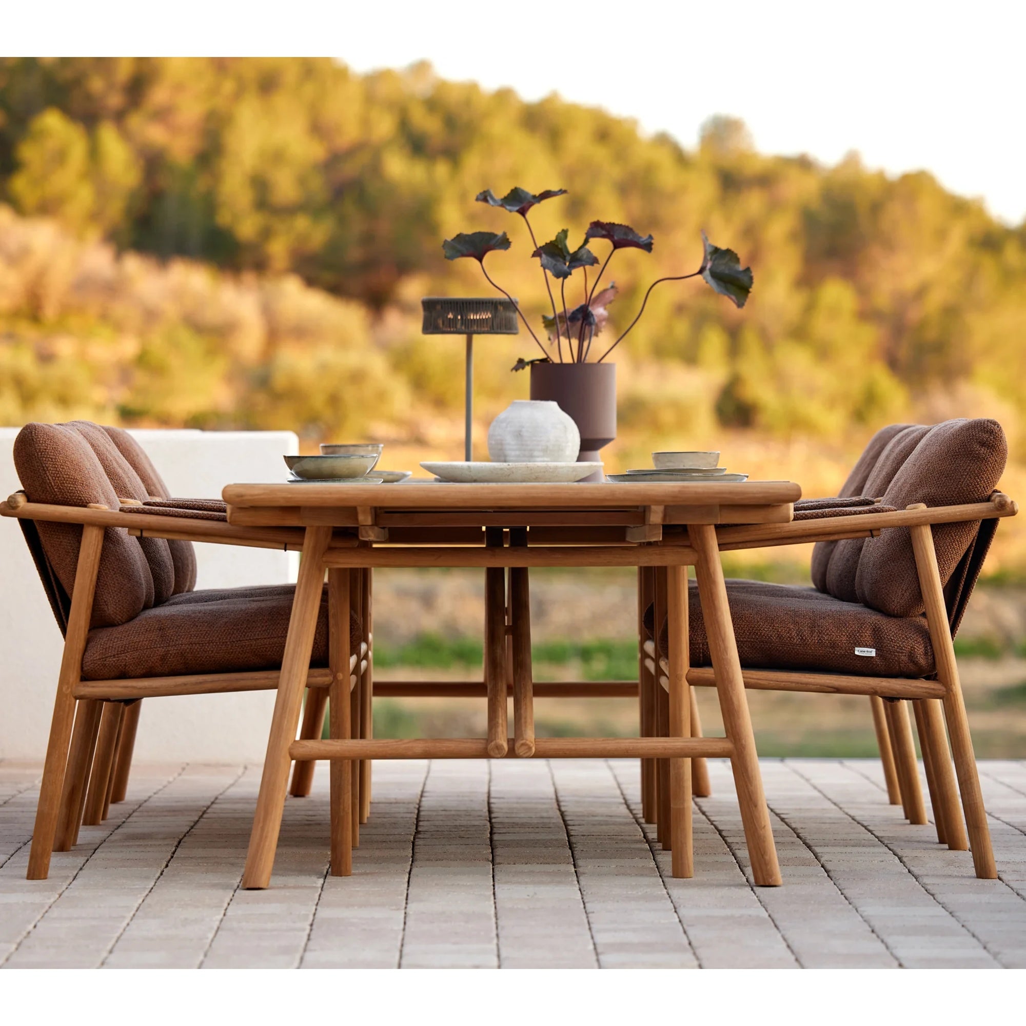 Inspired by the simple elegance of natural forms, this armchair effortlessly blends contemporary design with enduring comfort. Its sturdy frame offers a harmonious balance, making it equally suitable for relaxed lounging or enjoying meals al fresco. The thoughtfully designed cushions provide an added layer of comfort and elevate the overall aesthetic. Created by Cane-line Design, this piece embodies sophisticated outdoor living.