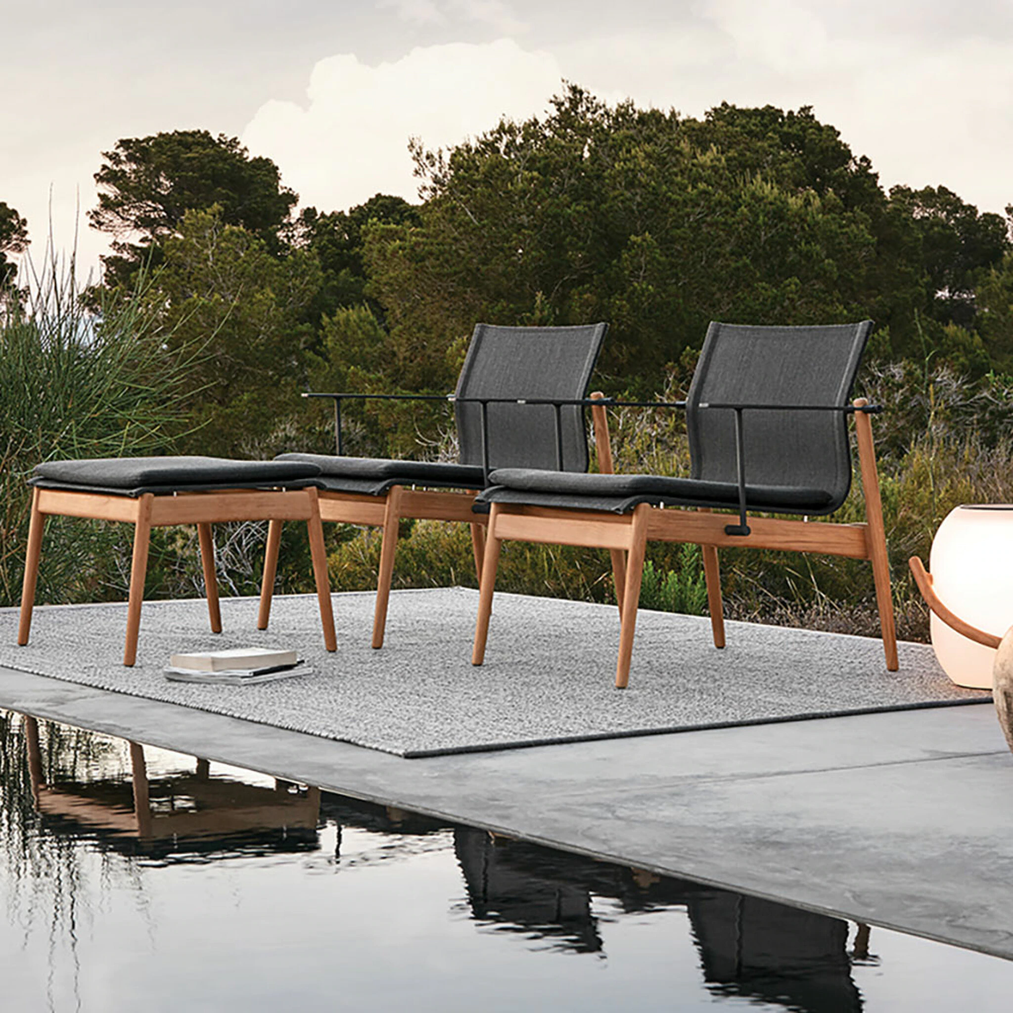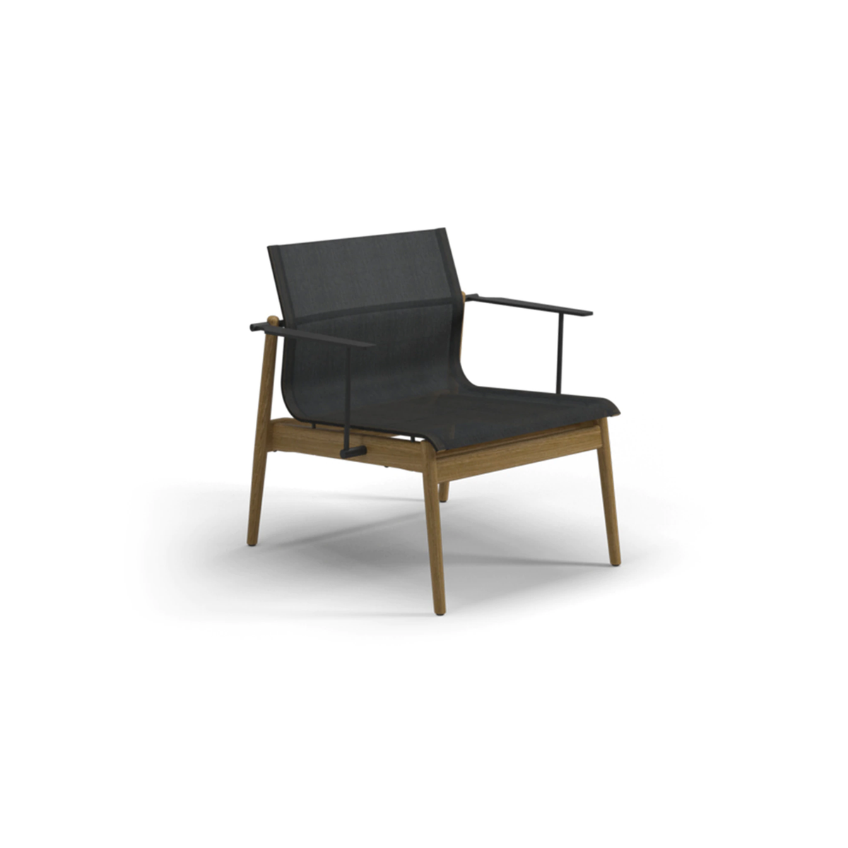 • Teak frame with aluminum accents and comfortable one-piece sling
