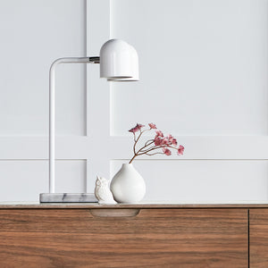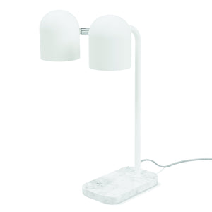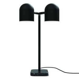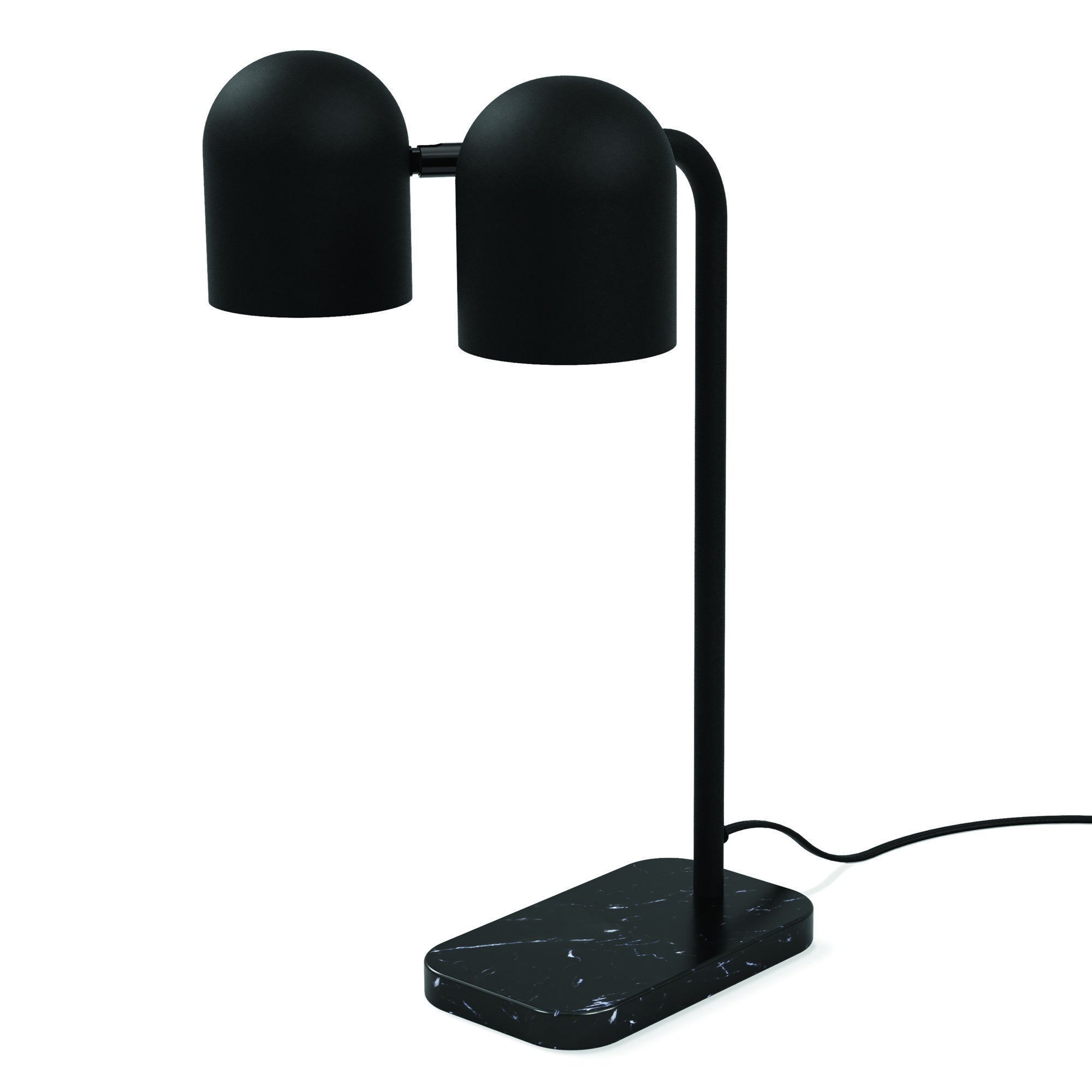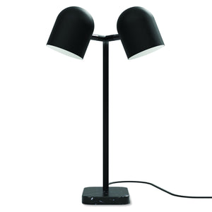 The Tandem Table Lamp seamlessly blends streamlined industrial aesthetics with practical functionality. This forward-thinking design offers a stunningly simple solution for illuminating your space. Each lamp head rotates and tilts, allowing for precise adjustment of the light to your exact needs. The elegant black lamp is perfectly complemented by a sleek black marble base, while the white lamp is paired with a matching white marble base.