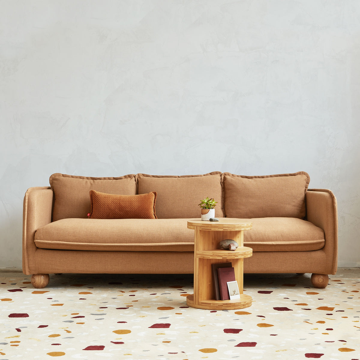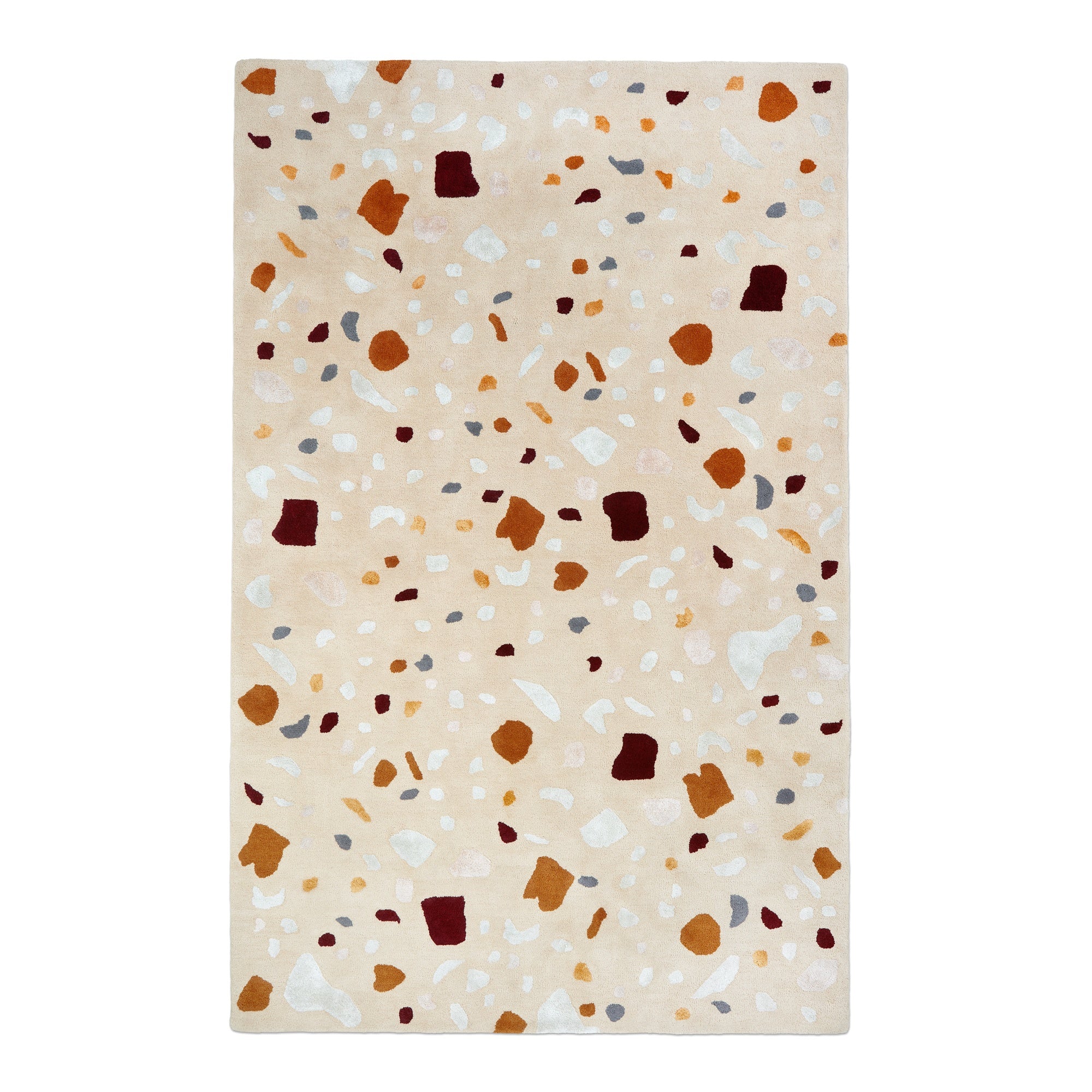 The Terraz rug captures the organic beauty of terrazzo, bringing its multicolored charm to your floors in a luxuriously plush form. Hand-tufted from 100% New Zealand wool, this high-pile rug offers a captivating interplay of colors, shapes, and sheens, creating a playful yet sophisticated foundation for any room. Each rug is a unique work of art, showcasing the skill of the artisan who crafted it, and resulting in subtle variations that celebrate the handmade nature of the piece. Available in two striking colorways and two sizes, Terraz effortlessly blends contemporary style with enduring comfort.