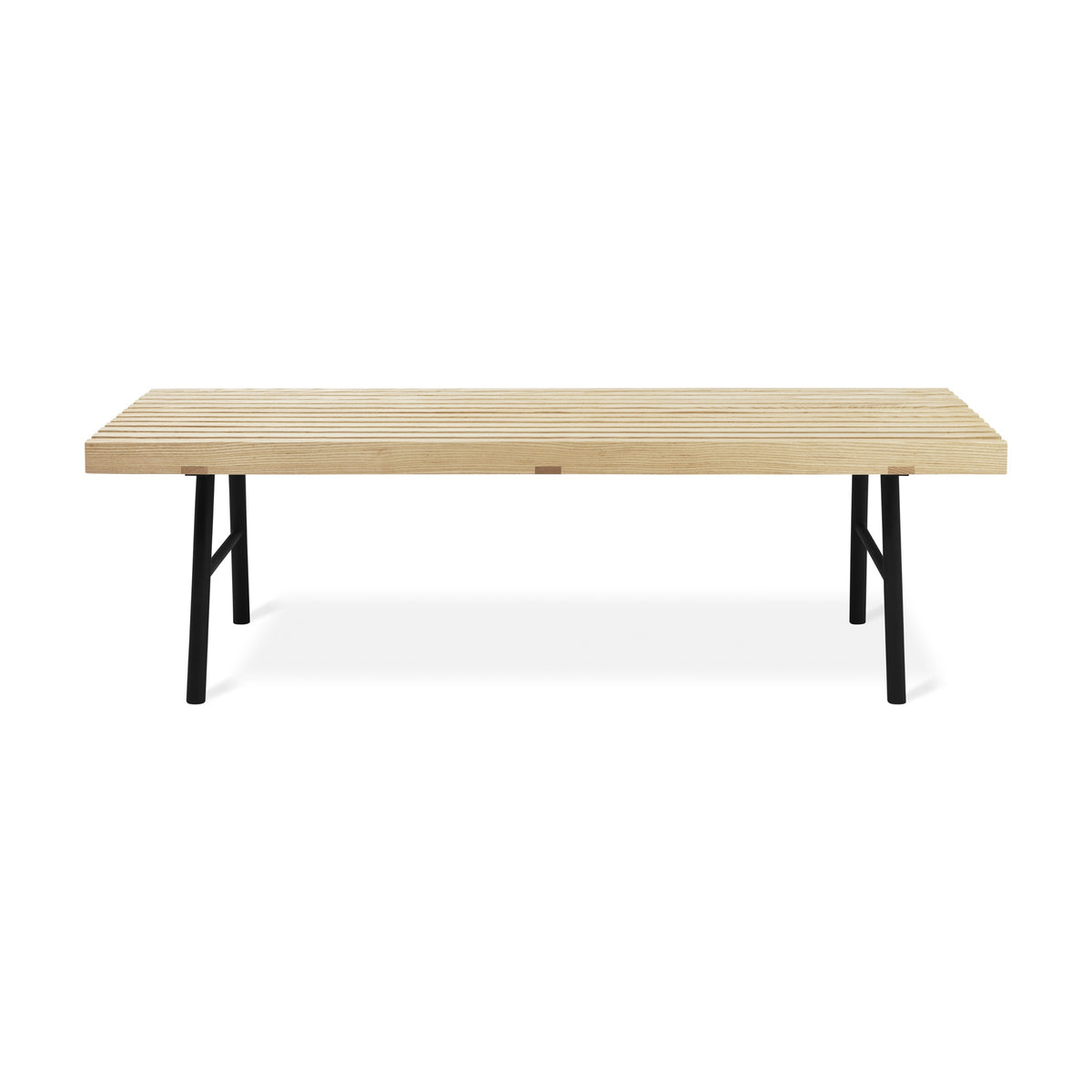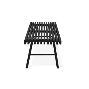 The Transit Bench is a versatile and stylish piece of furniture, perfect for a variety of uses and spaces. Its compact design makes it ideal for smaller areas like entryways or bedrooms, where seating is needed but space is limited. Alternatively, it can easily function as a unique and attractive coffee table, adding a touch of modern design to your living space. The natural beauty of the wood grain combined with the sleek steel legs creates a piece that is both functional and aesthetically pleasing.