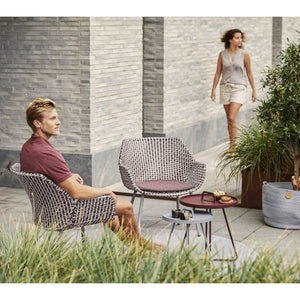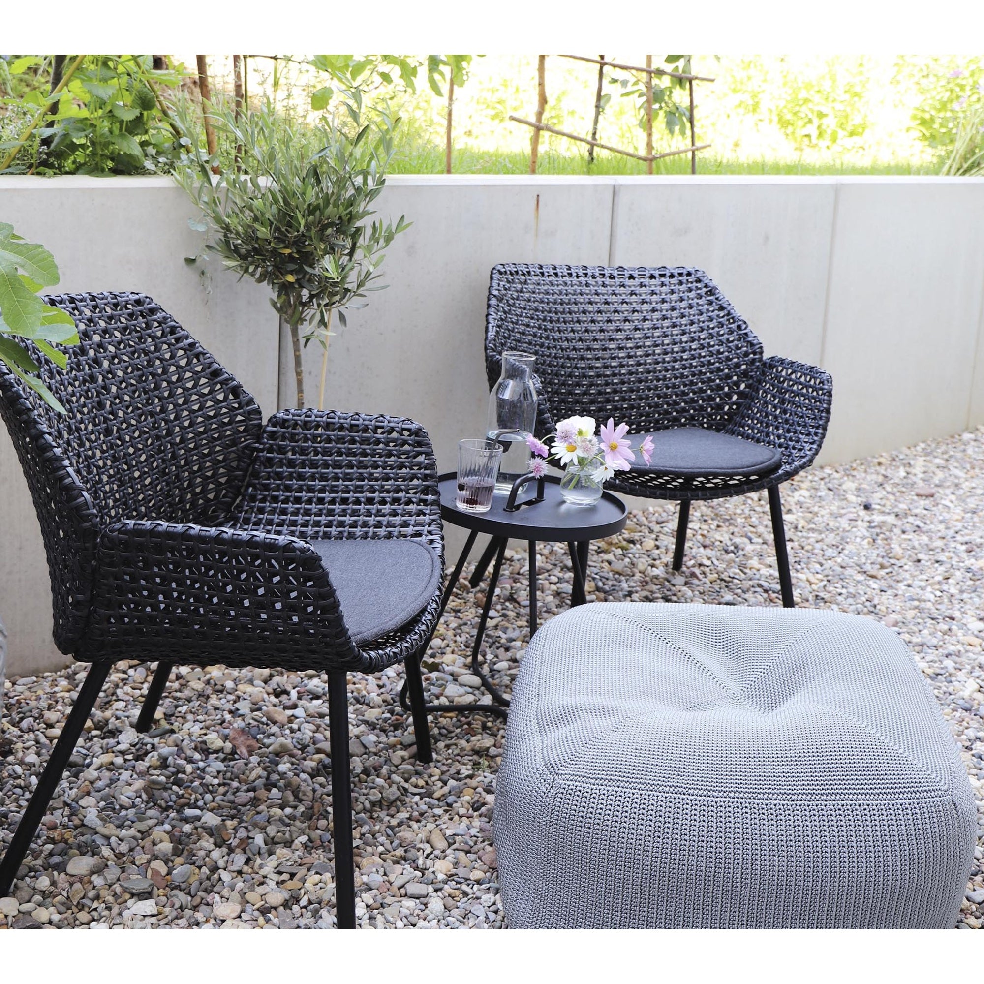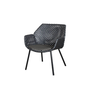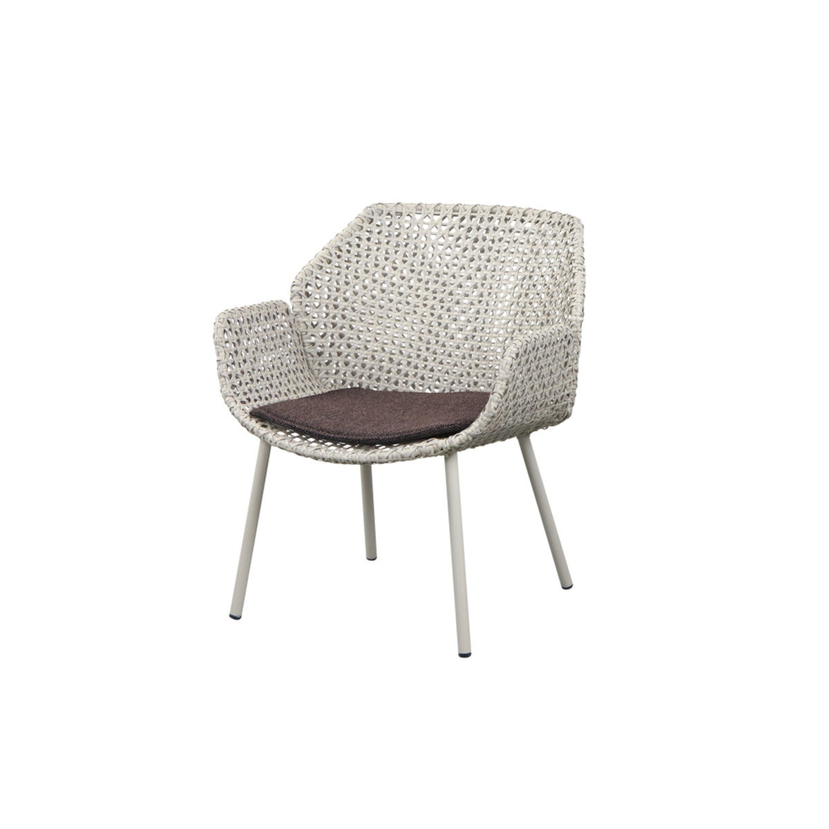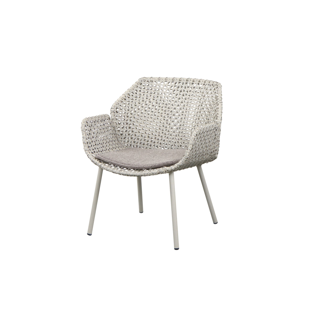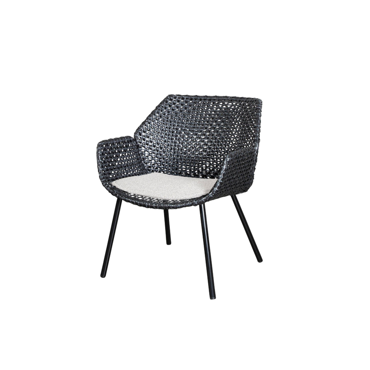 The frame is crafted from strong steel, ensuring stability and strength. The seat features a unique woven pattern made with durable Cane-line Weave®. The seat cushion provides increased comfort and is available in Cane-line Natté or Cane-line Wove.