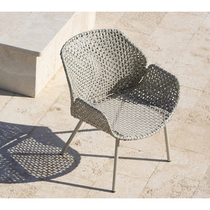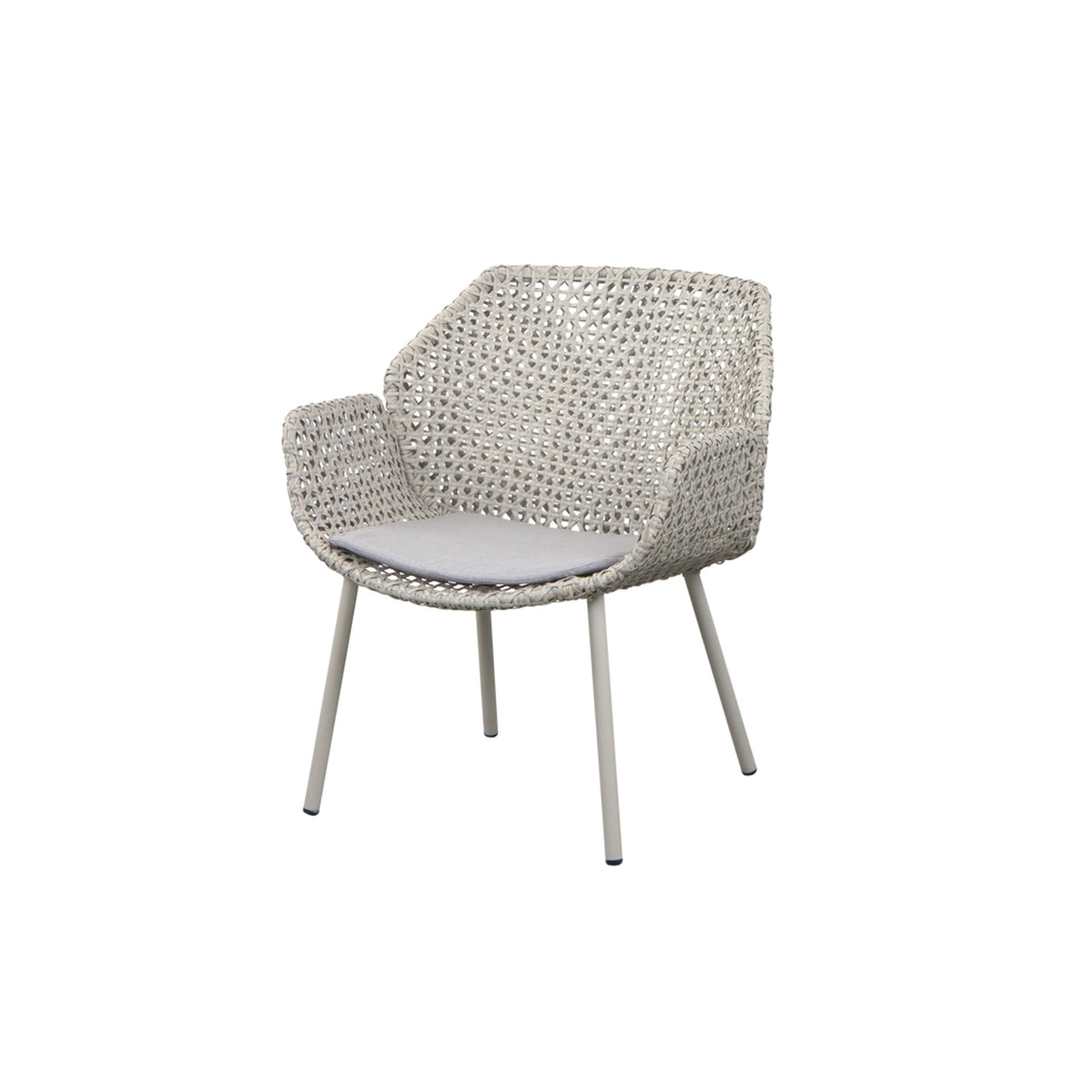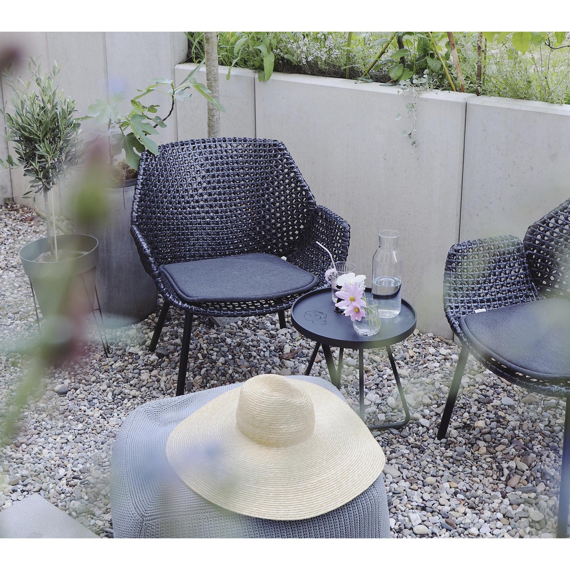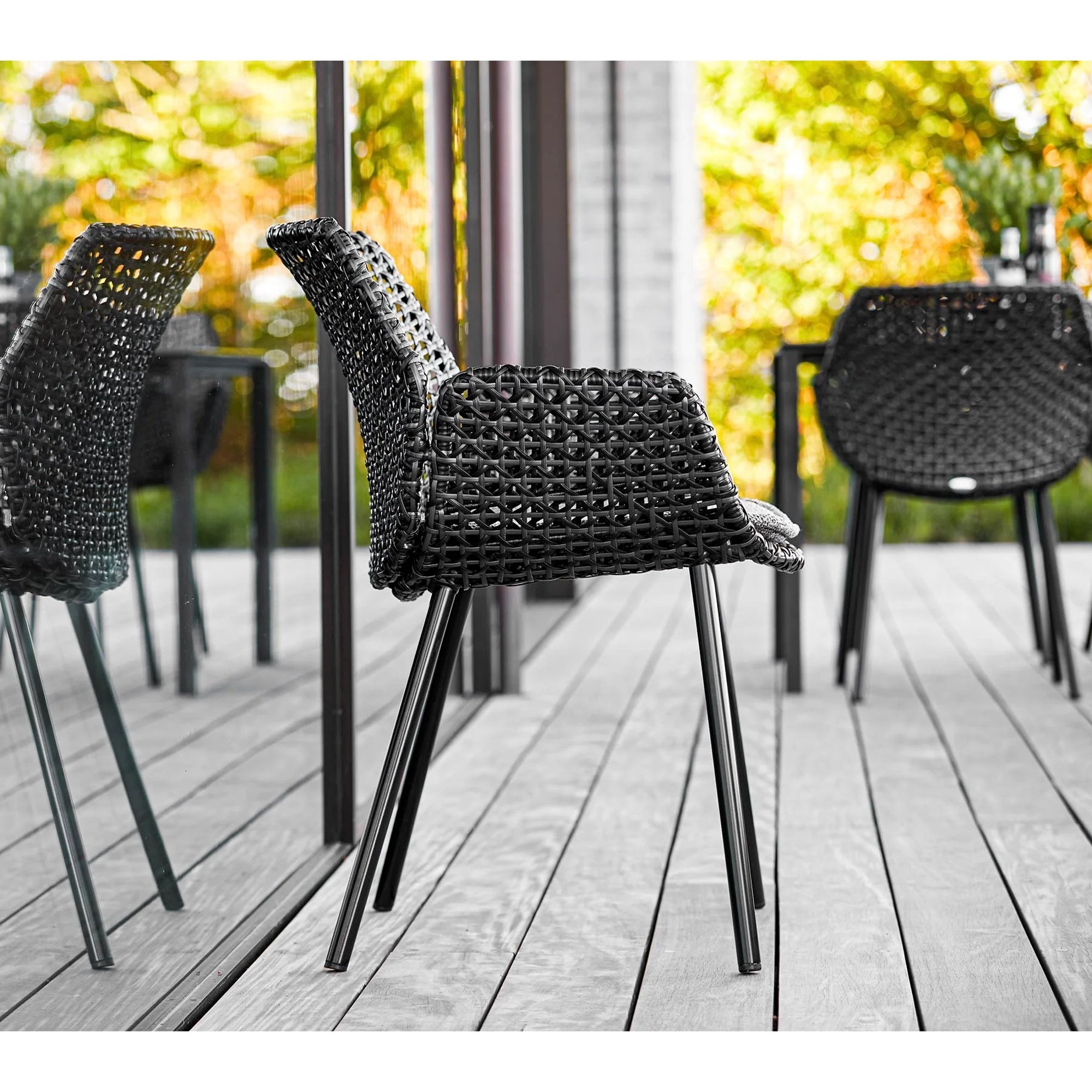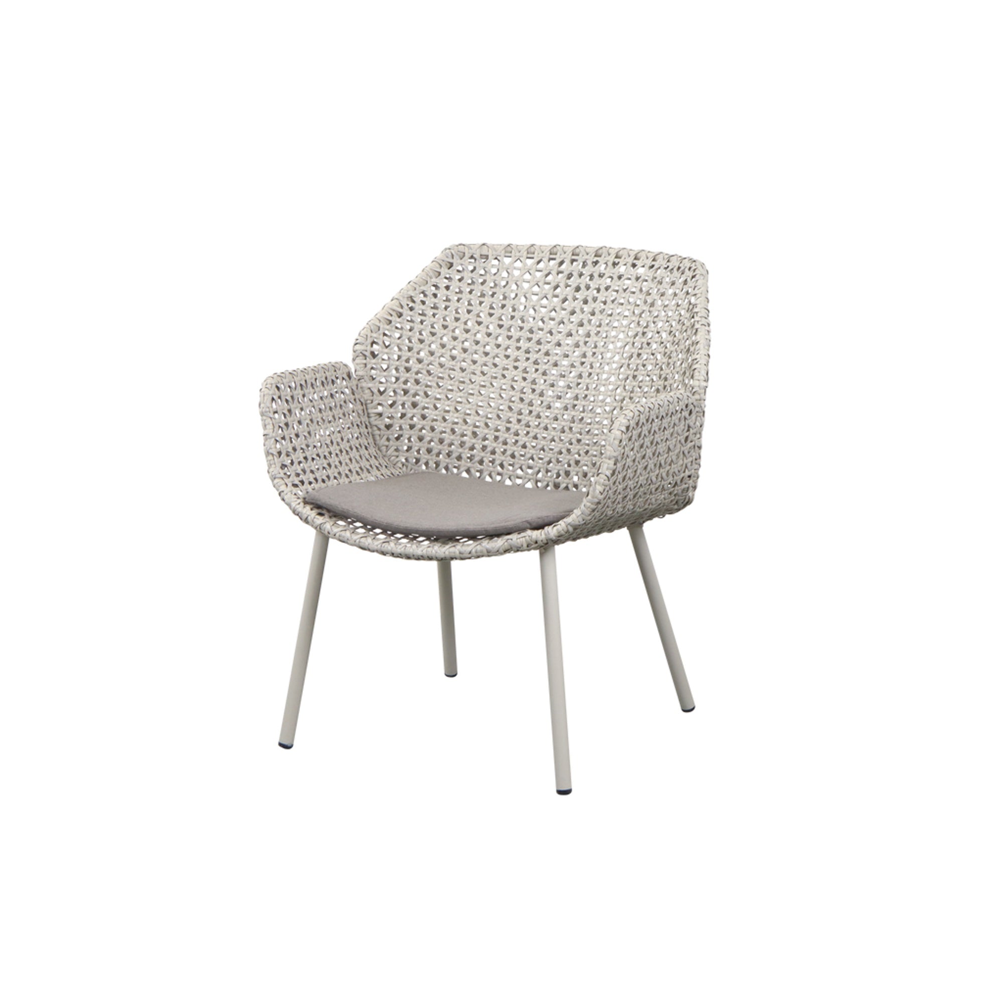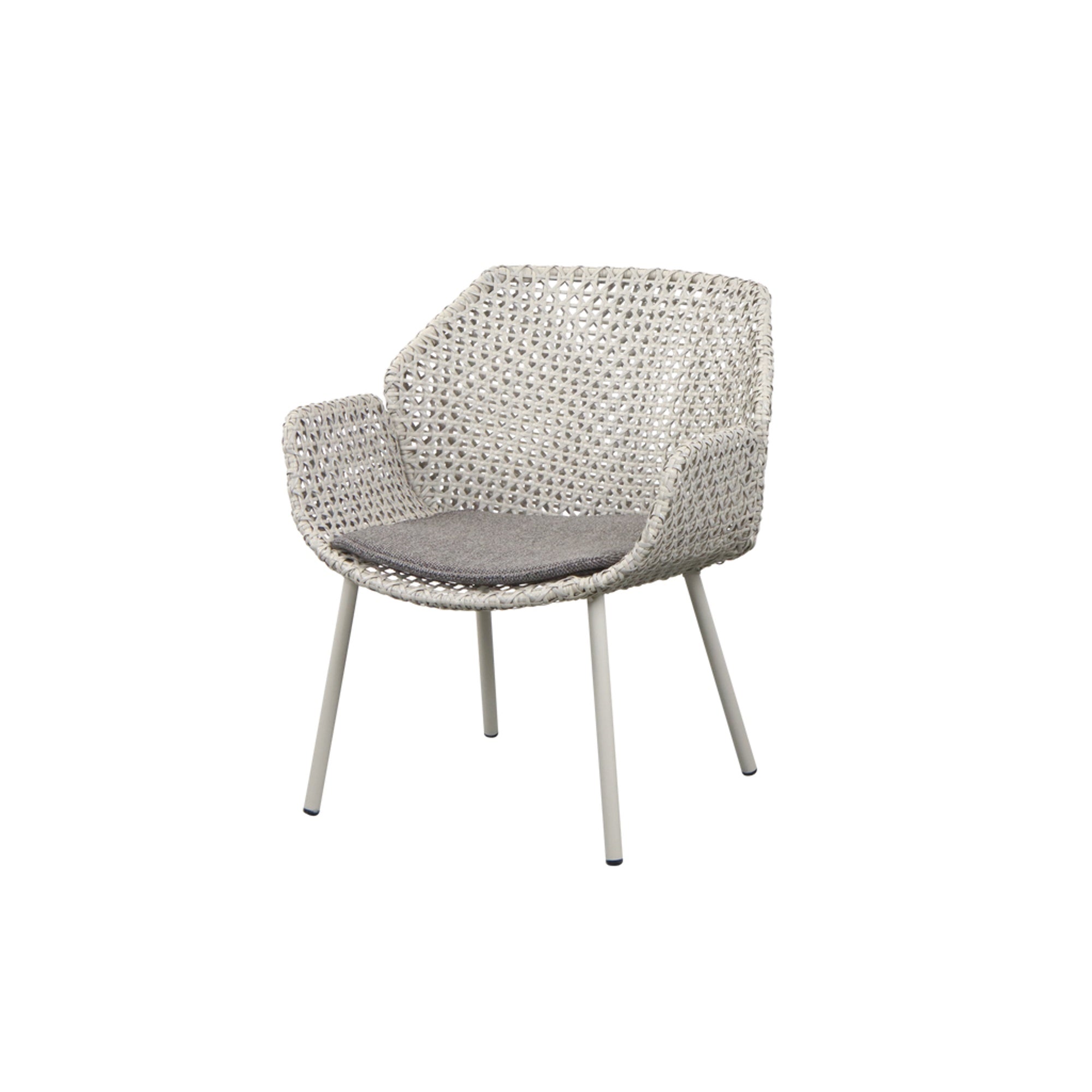 The frame is crafted from strong steel, ensuring stability and strength. The seat features a unique woven pattern made with durable Cane-line Weave®. The seat cushion provides increased comfort and is available in Cane-line Natté or Cane-line Wove.