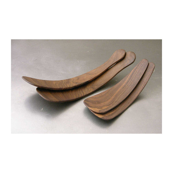 Beautifully carved salad servers made from black walnut. Hand crafted in Western Massachusetts. Spencer Peterman is always on the lookout for fallen trees, especially those covered by moss and dirt. From these trees, he finds wood with unique markings.